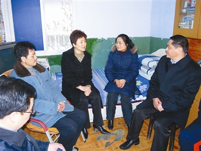 成都市委常委、市总工会主席包惠(中)、市总常务副主席王建平(右一)登门慰问困难职工