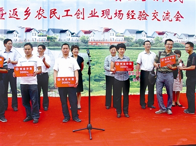 向创业者代表发放创业援助金