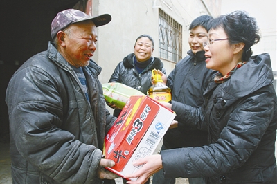 春节临近,古城河南省开封市党政机关和社会各界广泛开展送温暖、献爱心活动,给贫困群众送米面、食用油、棉衣棉被、现金等物品,把党和政府的关怀送到贫困群众心中,送上新春的祝福。 汴煊 摄