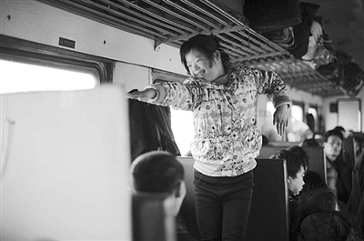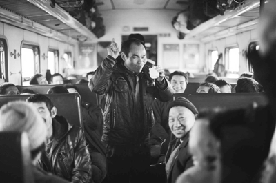 在L165次专列上,不少农民工的脸上都洋溢着笑容。