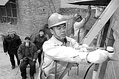 春节前夕,河北高阳供电公司10支党员服务队走进农村五保户、留守家庭、特困户、孤寡老人家中,帮助他们解决用电问题,确保他们过上一个温馨、祥和的春节。截至目前,服务队已走访这些家庭89户,免费为其铺设电力线路716米,更换节能灯具135盏。图为该公司员工在为小王果庄村留守老人高曙光家检修用电线路。杨广军 摄