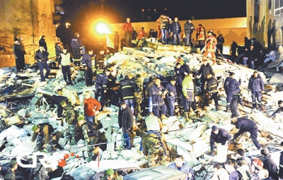 1月15日,黎巴嫩首都贝鲁特一处民居发生坍塌,救援人员在废墟中搜寻幸存者。发生坍塌的建筑建于上世纪60年代,在建筑墙体裂缝和恶劣天气的共同作用下发生了坍塌。事故目前造成一名15岁居民死亡,8人受伤。吉平 供图