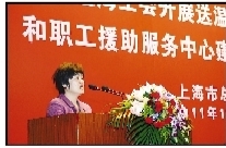 杨浦区总工会党组书记麦碧莲在市送温暖活动20周年和职工援助服务中心建设10周年纪念大会上作交流发言