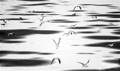 当地时间1月15日,在德国柏林,一群鸥鸟飞过部分解冻的湖面,构成非常优美的画面,宛若一幅山水画。当天柏林迎来了今年第一场雪,气温保持在冰点左右。 阿健 供图