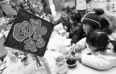 春节前夕,一些家长热衷带孩子体验手工制作节日饰品的乐趣,浓浓年味扑面而来 李国 摄