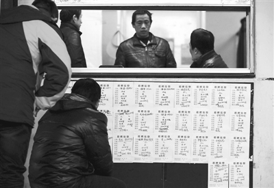 1月28日,南京安德门民工就业市场结束春节休假,重新开市营业,场内各职介机构准备了1万多个就业岗位投入招聘,来自各地的大约1500名农民工冒雨进场求职。