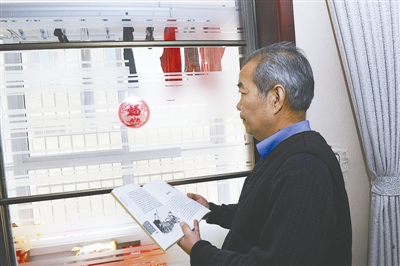 1月29日,在儿子胡学军家中,胡丙申老人在阅读书籍。