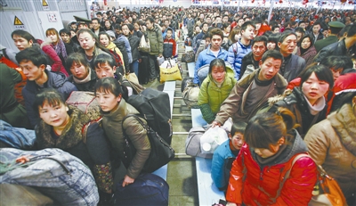 1月31日,旅客在成都火车站第一临时候车厅等待检票上车。当日,成都铁路局的最新统计数据显示,预计从1月23日(农历正月初一)至2月16日全国春运结束共发送旅客1420万人,截至目前,1月28日(农历正月初六)发送旅客59.53万人,创今年节后春运单日高峰。同时,预计2月1日起出现持续客流高峰,并在2月9日左右日均发送量突破62万人。新华社发(王申 摄)
