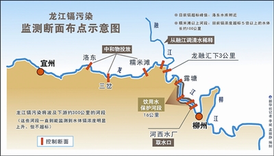 目前,自治区环保厅调集了210多名监测人员、95台(套)监测设备、40多辆车参与应急监测,在龙江至柳江200多公里河段共布设20个定点监测断面和数十个巡测点,对重点断面实行严密监测监控,并及时向社会公布。