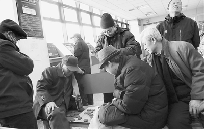 2月2日,北京一家证券交易营业厅中,散户股民设中国象棋比输赢。他们把证券交易营业厅当做娱乐俱乐部,这是目前北京股民们的“新桥段”。
