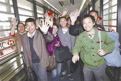 272名滞留利比亚的中国公民乘坐东航的撤侨包机抵达上海(2011年2月27日摄)。