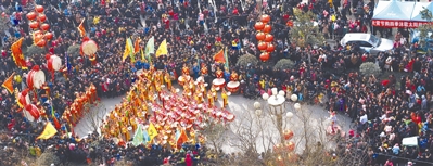 2月6日,河南省宜阳县民间社火巡游活动拉开序幕。威风锣鼓、扭秧歌、抬花轿、划旱船等民俗表演营造出了热闹、喜庆的节日氛围。田义伟 摄