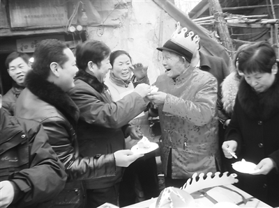 图为平顶山市总工会工作人员在为老劳模祝寿。郑巍 摄