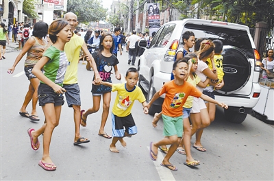 2月6日,在菲律宾宿务街头,当地居民在地震后奔跑。新华社/法新