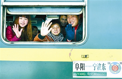 当日,安徽阜阳火车站开出送票下乡农民工平安返程专列,2200多名农民工乘坐从阜阳开往宁波东的专列外出务工。卢启建 摄
