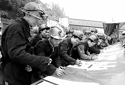 2月1日中午,在重庆能源集团松藻煤电公司逢春煤矿井口安全文化广场,500多位上中班的员工与该矿党政领导一起共同宣誓并签字,为2012年实现安全生产做出庄严承诺。年初,该公司大力宣传河南煤化集团永贵公司连续七年实现安全生产的成功经验,号召全公司员工树立“从零开始、向零奋斗”的安全理念,统一“事故是可防可控”思想,提高全员的安全意识,再创安全最好年。张登泽摄