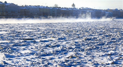 1月31日,在俄罗斯圣彼得堡,一艘碎冰船在冰冻的涅瓦河上行驶。新华社/路透(翟健岚 编辑)