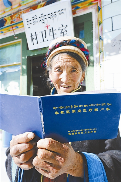 西藏曲松县琼嘎村62岁的扎西曲珍拿着自己的医疗账户本准备在村卫生室就诊。以免费医疗为基础,政府主导、个人自愿参加,大病统筹和医疗救助相结合的西藏农牧区合作医疗制度全面推行以来,政府不断加大乡村医疗建设投入力度,逐年提高补助标准。新华社记者 文涛 摄