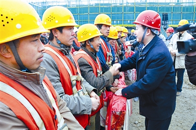 绵阳市委常委、市总工会主席罗晓东到建筑工地慰问职工。
