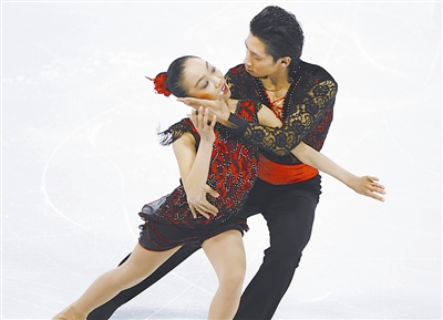 在北京时间2月13日凌晨进行的2011-2012赛季四大洲花样滑冰锦标赛双人滑比赛中,中国小将隋文静和韩聪延续着在短节目中的出色状态,在自由滑中也摘得第一,从而夺得了双人滑冠军。CFP供稿