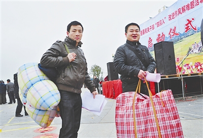 2月15日上午8时,湖南省道县启动了“机关干部四深入,改进作风解难题”活动。全县2000多干部打起铺盖,深入企业职工,深入基层群众,面对面地与职工交流,倾听职工意见、反映职工诉求;心贴心地做职工思想工作,与职工群众谈心交友、增进感情;实打实地为职工和企业服务,维护职工权益,促进了企业发展。杨安良 摄