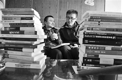 团队创始人付定宇(左)和成员唐尚乐在工作间隙聊天。