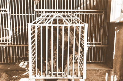 微博上流传着一组很有名的照片,记录了某制药企业从活熊身上取胆的行为,在熊活着的时候,一位工作人员将一个金属管永久地插入熊的胆囊,另一端露在熊的腹部外面,以长期多次抽取胆汁。黑熊因为伤口裸露在外,永不痊愈,所以经常感染,而黑熊则身着铁背心,被关在铁笼中。