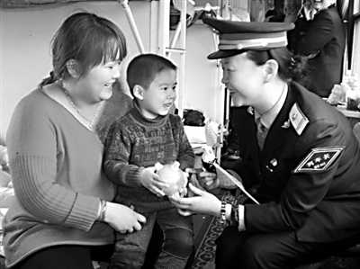 担当有60对图定列车、23对临客的郑州客运段,针对正月十五前后列车上孩子多的实际,在每对列车上精心准备了玩具,孩子家长只要将车票押在办公车,或将车票交给列车员保管,即可拿到一个玩具供孩子们玩耍。图为在高崎至郑州K744列车上,列车长陈宏霞为孩子提供玩具时的情景。(陈有会 摄影报道)