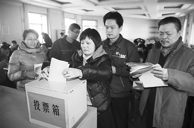 2月17日,职工代表给管理者投票。近日,山东滨州华纺股份有限公司开展综合考核和民主评议活动。55名职工代表按照清廉自洁、敬业奉献、管理作风等12项内容对管理岗位的领导进行打分和评议。管理者素质高不高、群众满意不满意,通过职工代表投票打分见分晓。郑安江 摄