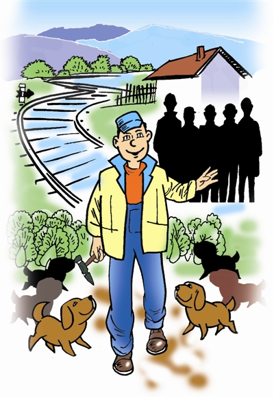 下午,6条蹦蹦跳跳的小狗将作业回来的工人们迎进了院子。没等他们放下手中的工具,几条小狗就直往钱开东身上蹭,“老婆孩子都在江苏老家,工区就是我的家,它们就是我的伙伴,想家人了就和它们聊聊!”钱班长说。