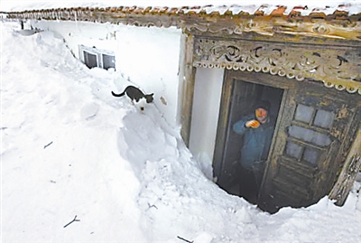 罗马尼亚布加勒斯特东北部的一个村庄,积雪几乎没过当地村民的屋顶