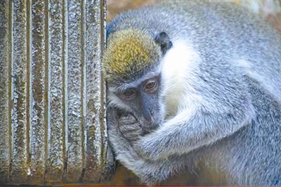 在青岛,一只黑长尾猴在暖气片上取暖(照片均为资料图)