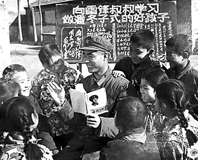 1970年,何朝海作为校外辅导员在给学生讲解雷锋的故事(雷锋资料展览馆提供)。