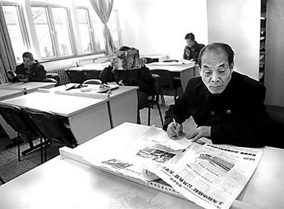 何朝海在北京宣武图书馆查阅报纸,搜集办报需要的资料(2月19日摄).