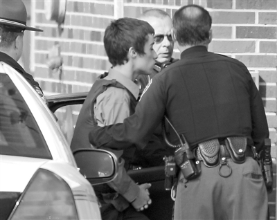 2月28日,美国俄亥俄州沙登高中的枪击事件嫌疑人、17岁的T·J·莱恩被带往基奥加县少年法庭。2月27日发生在沙登高中的枪击事件死亡人数已升至3人。一名枪手当地时间27日7时30分左右在沙登高中校园内的3处地点开枪击中5人。新华社/美联