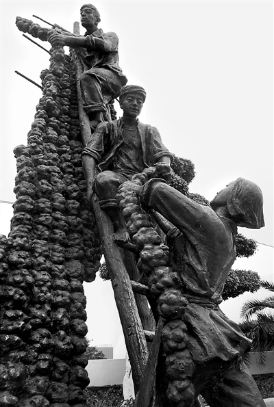 一座表现涪陵榨菜风脱水场景的重达1吨多的铜铸圆雕工艺作品,于春节期间现身重庆市涪陵两江广场。