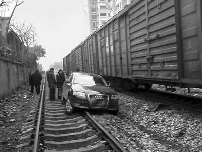 日前,25岁的小夏酒后驾车开上了铁路,而且一走就是上百米,直到轮胎被磨破、车底盘被铁轨卡住才停下。小夏说因不熟悉路线,被车载GPS引导开到铁路上来了。交警对夏某进行酒测,属于酒后驾驶,其被移交给武铁警方处理。他的莽撞导致两趟火车停运。杨涛 摄