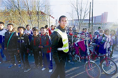 图为2011年11月,青海格尔木地区一学校放学后,走路回家的学生排队等候红灯过马路。本报记者 杨登峰 摄