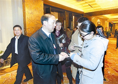 3月6日,全国人大代表、华中师范大学教授周洪宇被记者索要名片。本报记者 杨登峰 摄