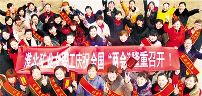 3月6日,在安徽淮北矿业童亭矿举办的庆祝“三八”国际劳动妇女节表彰大会上,40余名优秀女职工在接受表彰的同时,向刚刚召开的两会诉说自己的心声。她们中有从事安全协管工作的能手,有立足班组开展革新创效活动的高手,有刻苦钻研成为独当一面的行家里手……她们期盼两会能在女职工劳动保护、维护女职工权益、重大疾病救助方面给予更多的关注,尤其是能够彻底消除女职工与男职工在退休年龄上的不平等现象,以便自己能够无后顾之忧地为企业的安全生产、技术创新等多做奉献。陈磊 摄