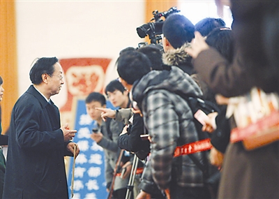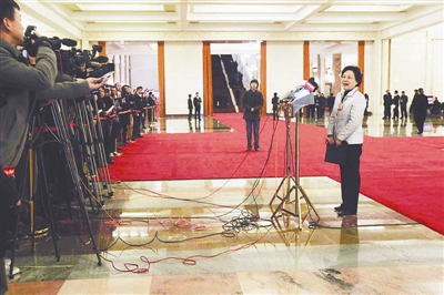 两会期间,人民大会堂北大厅是传说中的“部长通道”,这也是记者进行集体采访的地方。一个简易采访台桌,一条隔离线,短暂采访就此展开。一条隔离线虽然隔开了记者和部长们,但拉近了部长和普通老百姓的距离——一旦被“请”到台前,部长们必须面对百姓关注的热点问题回答记者的提问。