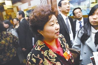 3月10日下午,在江苏代表团驻地,全国人大代表陆亚萍在讨论会后边回房间边接受采访,记者一直跟到电梯里,采访仍在继续。作为一名民营企业家,在今年两会上,她有太多话要说。从去年以来,我国实体经济遭遇发展难题,他们的困境以及出路成为今年两会媒体关注的热点。本报记者 杨登峰 摄
