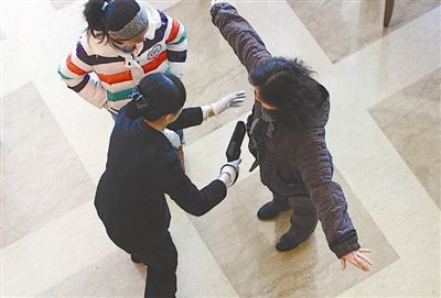 北京会议中心是北京团代表驻地,同时还是经济、教育、医卫等多个界别的委员驻地,记者云集。小组讨论开始前的15分钟,是安检员最忙碌的时候。尽管有机检帮忙,但大多数人还是需要安检员扫描全身。