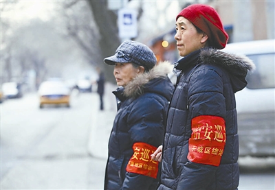 3月13日上午10:10,北京市西城区新街口。两位佩戴着红袖标的社区志愿者正在巡查。看到挂着两会采访证的记者走来,其中一位忙问:“有什么事儿要帮忙吗?”两位大妈一位姓赵,一位姓孙。