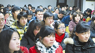 图为农民工大学生们在认真听课。