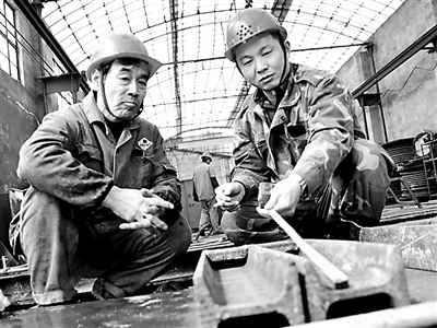3月12日,山东兖矿集团兴隆庄煤矿综采装修队工人技师张树波(右)设计的液压支架自固定免封车器进入批量生产。以往,往井下运输液压支架时,需要3~5条封车器才能固定住笨重的支架部件,费工费时不说,还存在跑滑等风险。为解决此难题,张树波和工友们结合支架安装工序,设计出框架结构的自固定免封车器,依靠支架自身的销子,就能将支架紧紧地固定在车盘上。董朋 摄