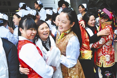 3月16日,在位于四川省南充市的川北医学院附属医院,藏族学生和带教老师拥抱告别。