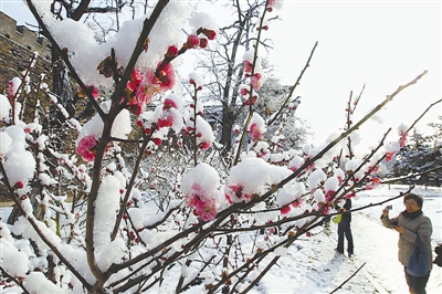 3月17日夜至3月18日凌晨,由于寒潮来袭,北京地区意外迎来一场春雪,全城银装素裹。由于正值周末,北京市民纷纷走出家门来到公园踏雪迎春。图为北京明城墙遗址公园雪景。 富田 摄