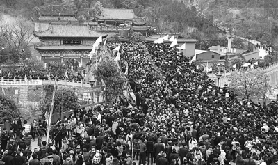 3月18日,四川安县睢水镇太平桥迎来附近市县的近50万群众,他们聚集在此参加延续了200多年的“踩桥会”民俗活动,祝福新的一年风调雨顺、家人安康。廖世龙 摄