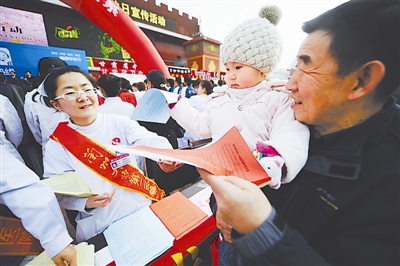 3月20日,一位兰州市民(右)在宣传活动现场了解患者权益维护相关政策。